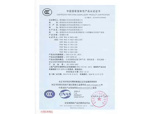 • 排煙防火閥CCCF證書